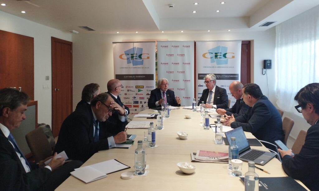La Confederación de Empresarios de Galicia (CEG) y Foment del Treball se han reunido, en A Toxa, con la pretensión de avanzar y planificar la celebración de un foro empresarial bilateral, que se celebrará en Barcelona, en 2026, y en el que participarán empresarios y empresarias gallegos y catalanes de, entre otros, los sectores industrial, textil, turístico y de economía azul.